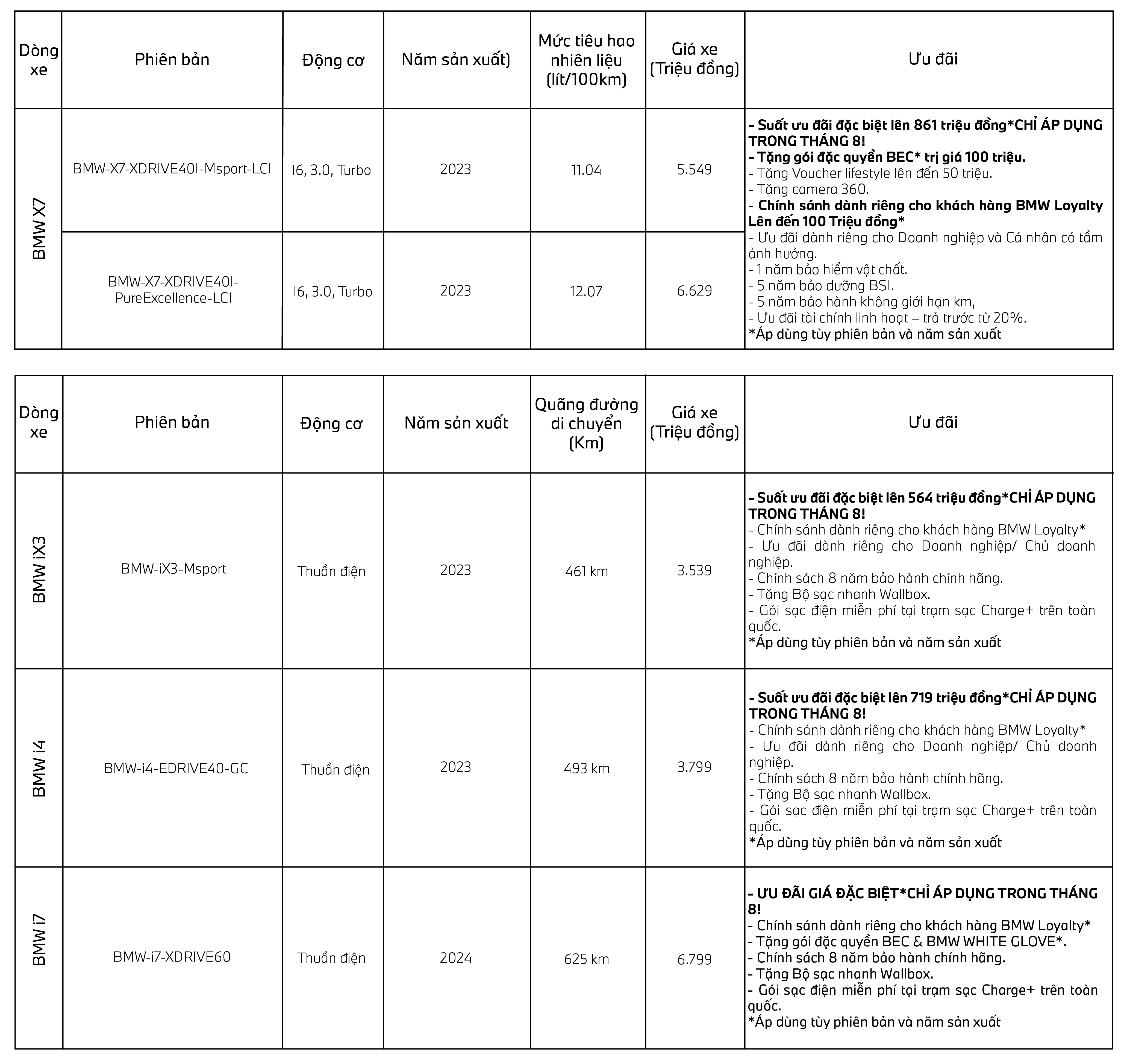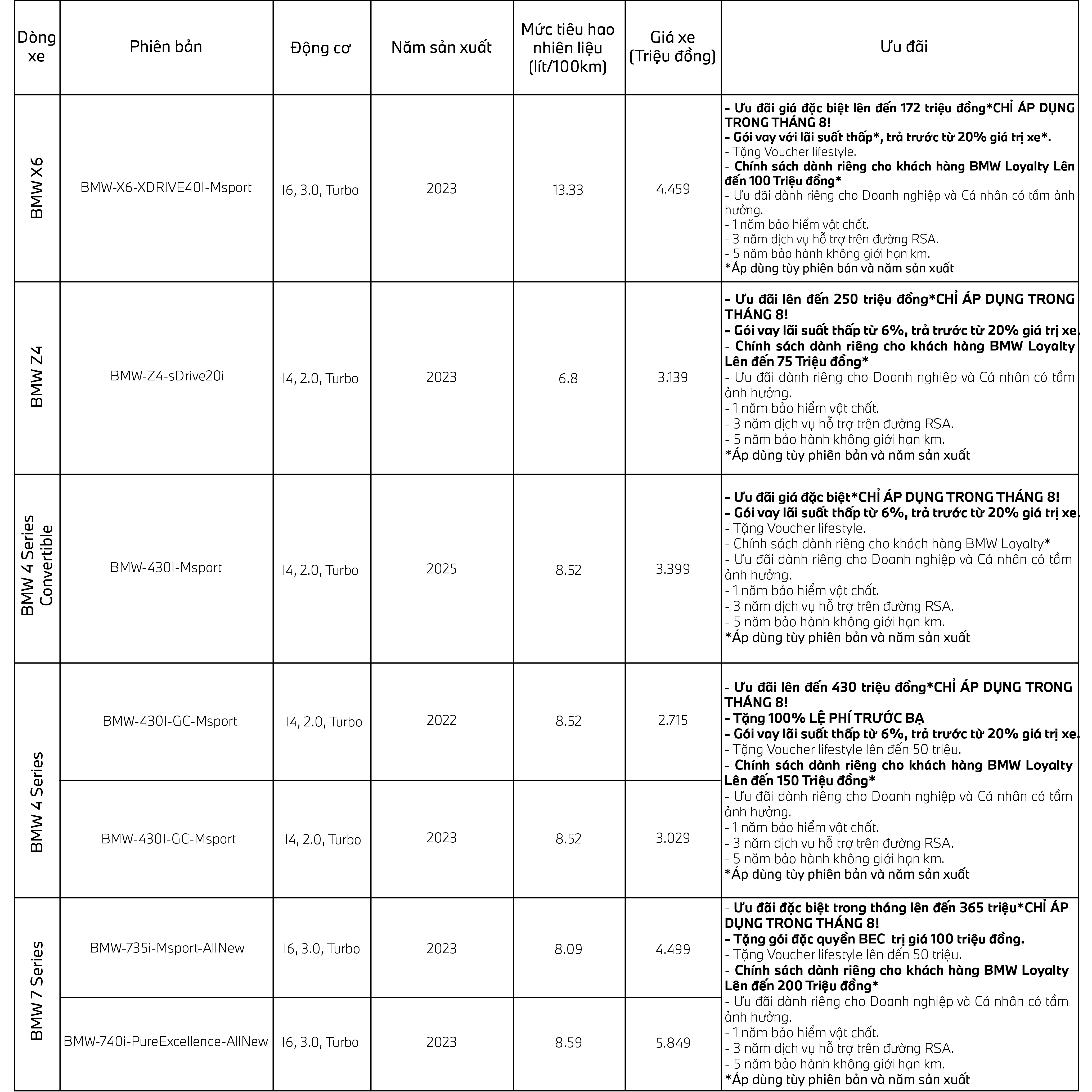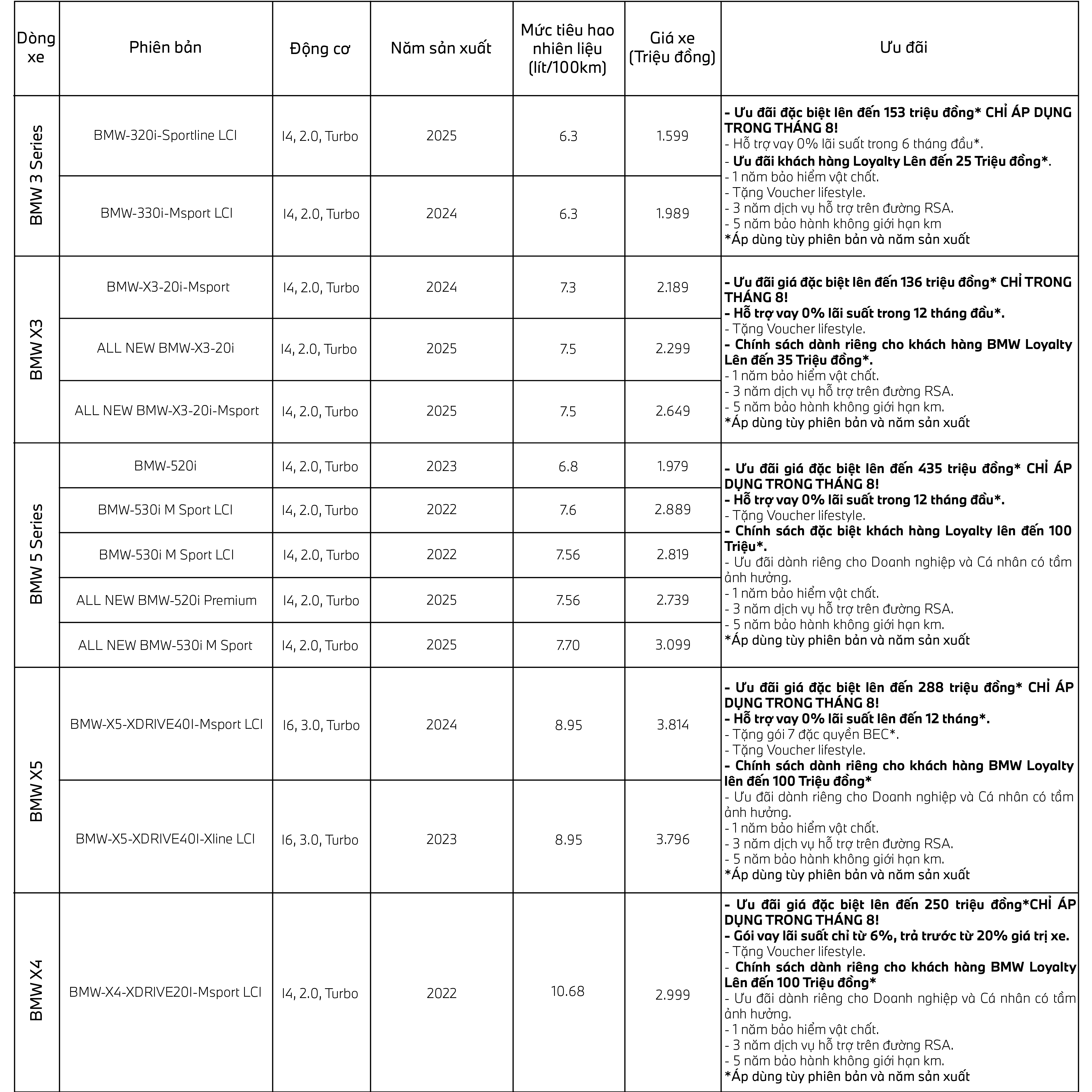 CẬP NHẬT BẢNG GIÁ XE BMW VÀ ĐẶC QUYỀN ƯU ĐÃI MỚI NHẤT THÁNG 08/2025
